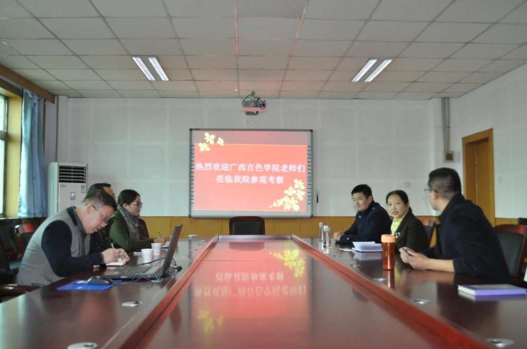 2017年11月14日下午,广西壮族自治区百色学院政治与公共事务管理学院党委副书记余群老师等一行三人来新葡官网考察交流。
