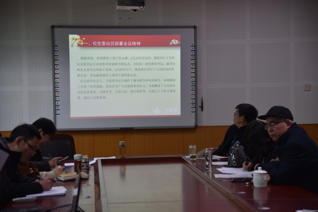 2月24日下午4:30,新葡官网在A-508多功能室召开“改革创新、奋发有为”大讨论动员会议。全体教职工和学生党员参加,院党委书记王银主持会议。