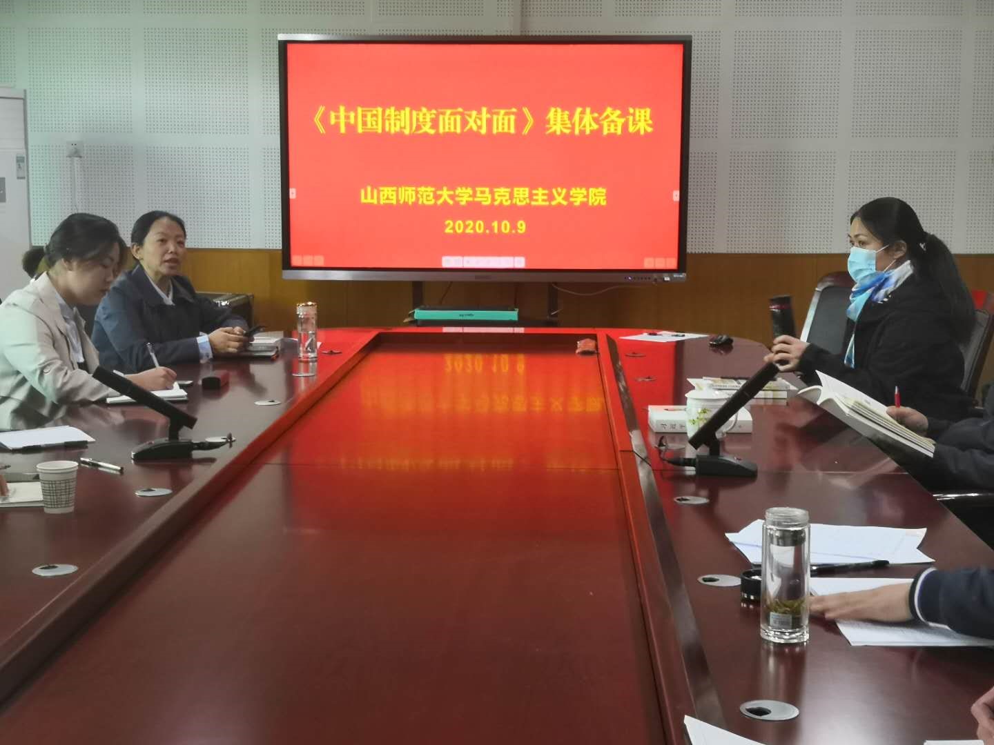 10月2日下午和、10月9日下午,3003新葡官方网站在科学会堂A508会议室举行“中国制度面对面”走进思政课课堂的集体备课。全体教师参加,教学副院长赵改萍主持。运城职业大学李国娟、罗舒贤两位教师于10月9日下午观摩并参加讨论。