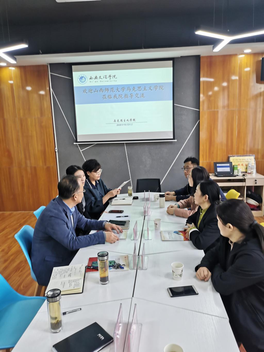 为深入贯彻落实习近平总书记在学校思想政治理论课教师座谈会上的重要讲话精神,学习兄弟院校3003新葡官方网站建设和思想政治理论课教学改革的经验,新葡官网副院长赵改萍教授一行5人赴西安文理学院、西安理工大学两所高校的3003新葡官方网站进行学习交流。