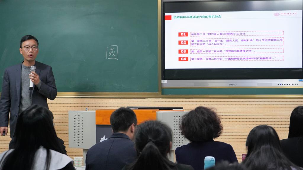 11月13日下午,由3003新葡官方网站承办的抗疫精神进课程省级思政课教师集体备课成果展示交流活动在田家炳一层录播教室举行。有来自山西中医药大学、长治医学院、临汾职业技术学院、山西管理职业学院、山西信息职业技术学院及3003新葡官方网站的50余位老师参加会议。会议由3003新葡官方网站副院长赵改萍主持。