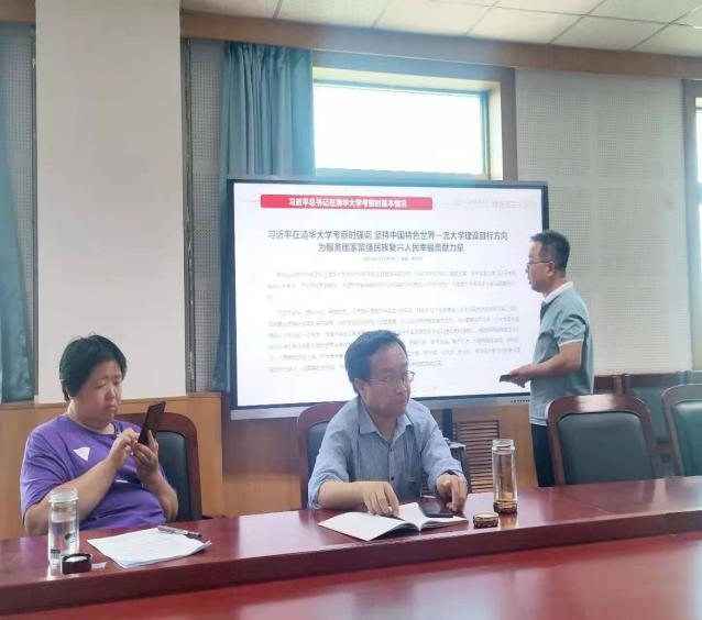 最后,王银书记结合学校党委文件精神及工作要求带领大家集体学习了习近平总书记在清华大学考察时的重要讲话以及习近平总书记《用好红色资源,传承好红色基因,把红色江山世世代代传下去》重要文章等内容。他强调,大家要在党史学习教育中做到学史明理,明理是增信、崇德、力行的前提。着重要从党的辉煌成就、艰辛历程、历史经验、优良传统中深刻领悟中国共产党为什么能、马克思主义为什么行、中国特色社会主义为什么好等道理;要向革命先烈表示崇高的敬意,永远怀念他们、牢记他们,传承好他们的红色基因;要以习近平总书记的有关重要要求为指引,善用习近平总书记教给的方法开拓进取,坚守初心,立足本质工作,为院校发展做出自己应有的贡献,以优异成绩向党的百年华诞献礼!