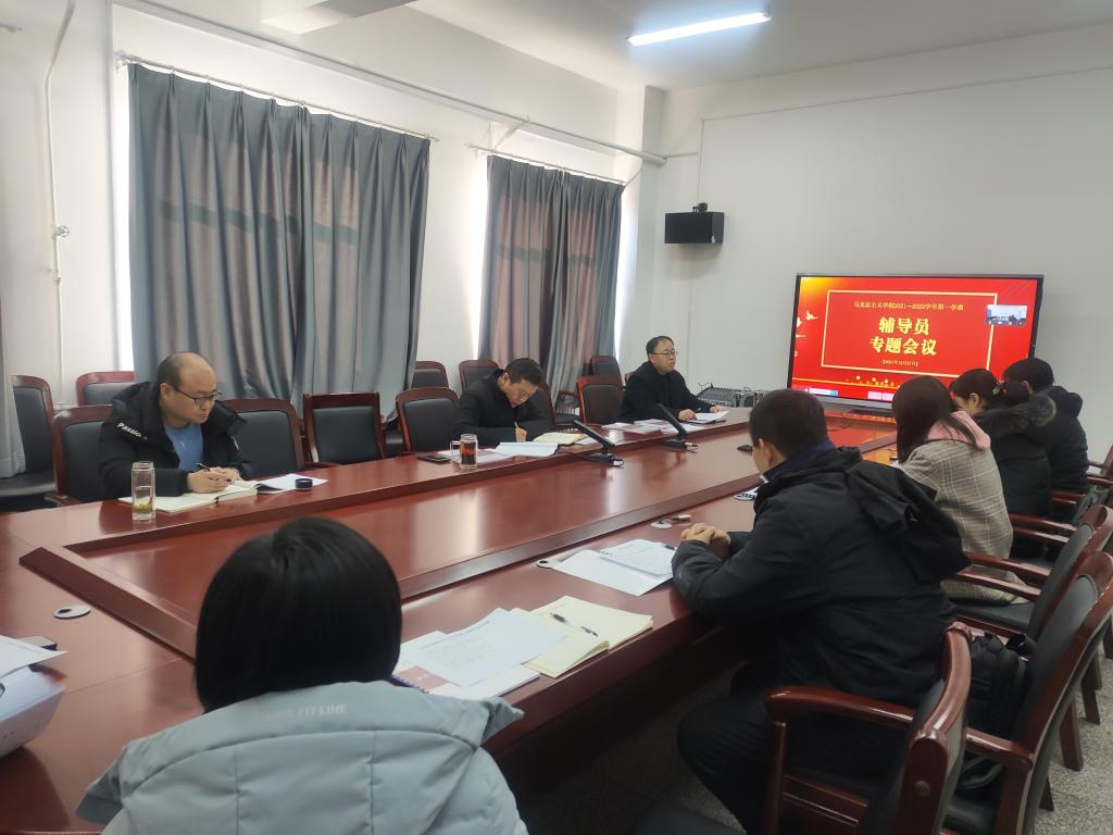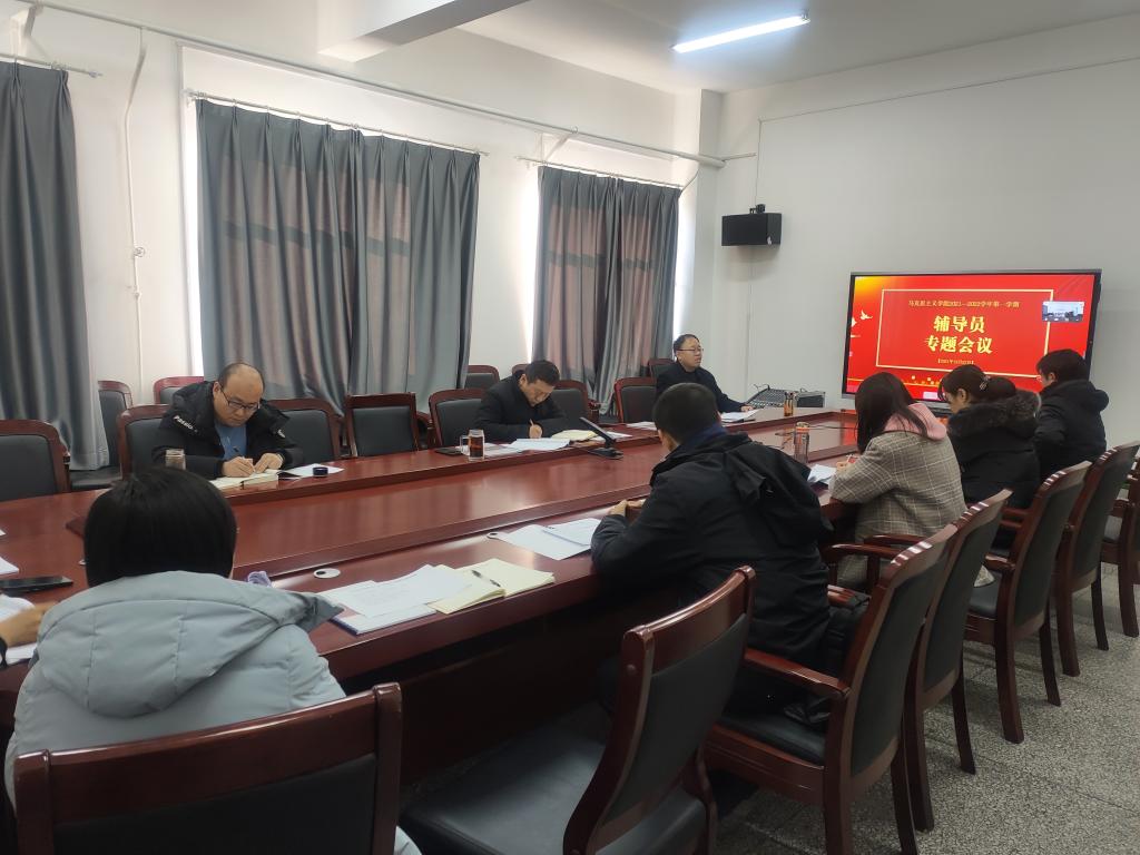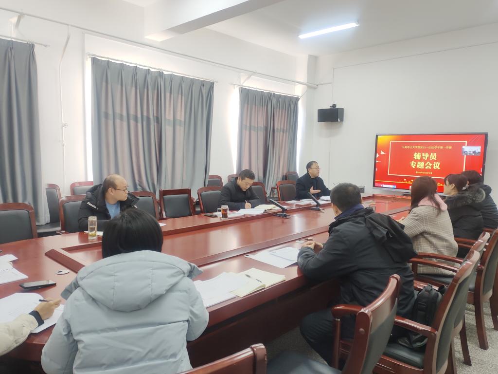 2021年12月27日下午,新葡官网在1号教学楼506会议室召开2021-2022学年第一学期辅导员专题会议,院党委副书记、学工组长孙学虎老师主持会议,全院辅导员到场参会。