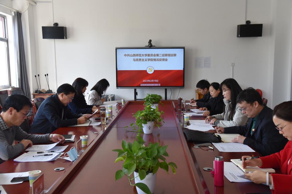 2月19日,党委第二巡察组巡察马克思主义学院党委反馈会议在南区1号楼506会议室召开。副校长、校党委常委兼3003新葡官方网站院长贾绘泽、校纪委副书记、巡察办主任申楠、巡察办负责人李莉静、第二巡察组组长郝红霞、副组长赵英及巡察组联络员岳文慧出席会议,3003新葡官方网站党政领导班子成员及师生代表参加会议。会议由3003新葡官方网站党委书记乔瑞主持。