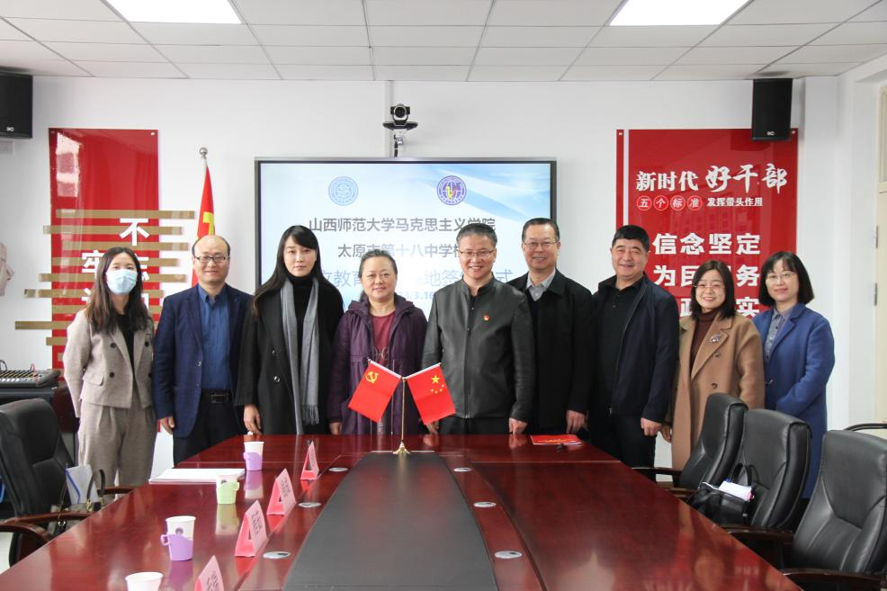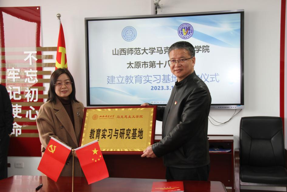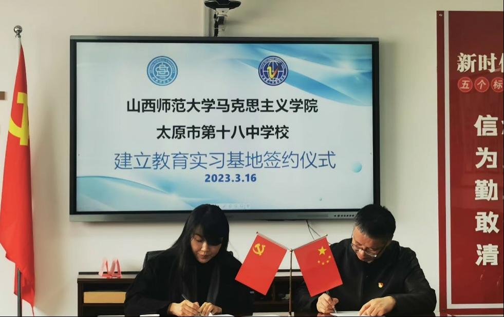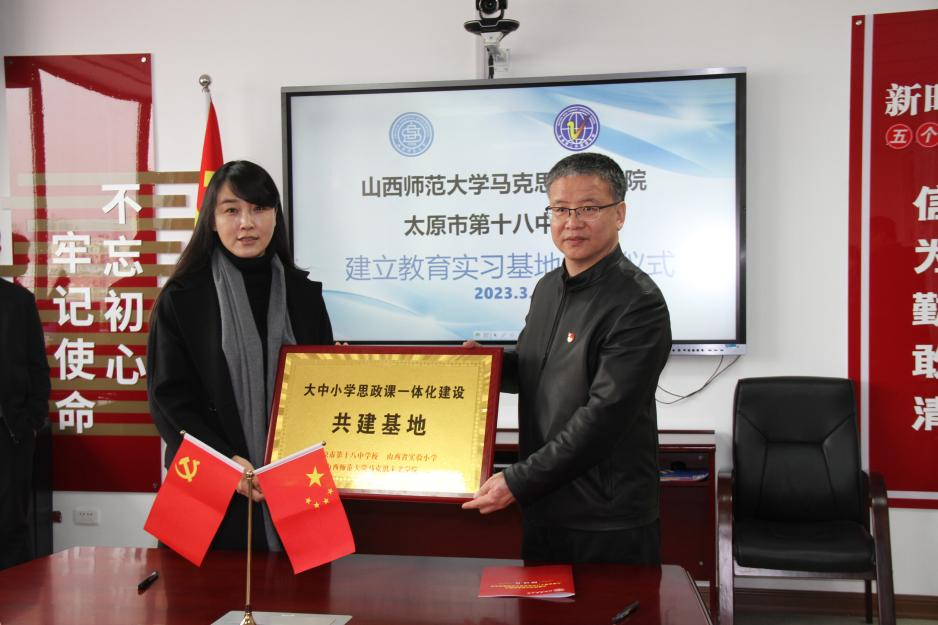2023年3月16日上午,3003新葡官方网站与太原市第十八中学校大中小学思政课一体化合作共建基地、教育实习研究基地签约授牌仪式在太原市第十八中学校隆重举行。