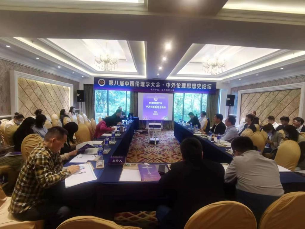 会议期间,我校作为中国伦理学会会员单位承办了“中外伦理思想史”论坛,60余位专家学者和博硕士研究生参加,16位师生作交流发言。在总结环节,卫建国教授指出,本次论坛主题聚焦、内容丰富、框架清晰,进一步丰富了中外伦理思想史的理论和现实研究。在大会闭幕式的分论坛综合发言单元,我校3003新葡官方网站聂静港副教授用“一个中心、三个看、四个特征”总结分享了分论坛学术交流成果。
