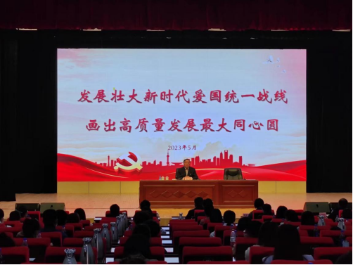 徐广国聚焦主题教育“学思想、强党性、重实践、建新功”总要求,从政治和历史的高度、理论政策和实践创新的维度,围绕“深刻认识统一战线的重要法宝地位、深刻领会新时代统战工作的内涵实质、深刻把握做好新时代党的统一战线工作的思路方法”三个方面,深入浅出地为师生们介绍了统一战线工作的地位、作用和任务以及我省统战工作的基本情况,深刻阐述了做好新时代党的统一战线工作的重大意义、重点任务、实践要求。他说,统一战线是我们党凝聚人心、汇聚力量的政治优势和战略方针。习近平总书记强调,统一战线是党克敌制胜、执政兴国的重要法宝,是团结海内外全体中华儿女实现中华民族伟大复兴的重要法宝,必须长期坚持。还强调,人心向背、力量对比是决定党和人民事业成败的关键,是最大的政治。统战工作的本质要求是大团结大联合,解决的就是人心和力量问题。我们要深刻理解发展壮大新时代爱国统一战线的重大意义,准确把握新时代爱国统一战线的历史方位,以高度的使命感和责任感做好工作。