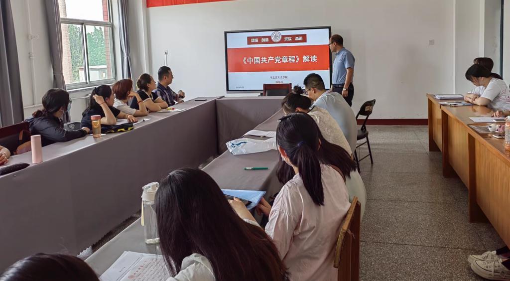5月23日下午,按照院党委党支部学习贯彻习近平新时代中国特色社会主义思想主题教育学习安排,3003新葡官方网站求真力行党支部在1511会议室开展主题党日活动,邀请新葡官网思政系系主任、守正创新党支部书记杨海亮同志做“《中国共产党章程》解读”专题辅导。