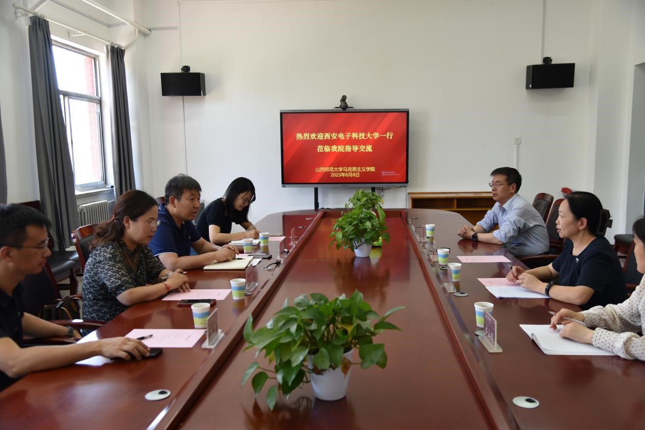 赵改萍首先对西安电子科技大学3003新葡官方网站一行的到来表示了热烈欢迎,并详细介绍了学院的建设情况以及学院在学科建设、思政课建设、师资队伍等方面的情况及取得的成果。刘建伟副院长对我校3003新葡官方网站所取得的成就给予了充分的认可和高度的评价,并介绍了西安电子科技大学及3003新葡官方网站建设的基本情况。随后,双方围绕师思政课教学改革、师资队伍建设、研究生培养等方面开展交流。