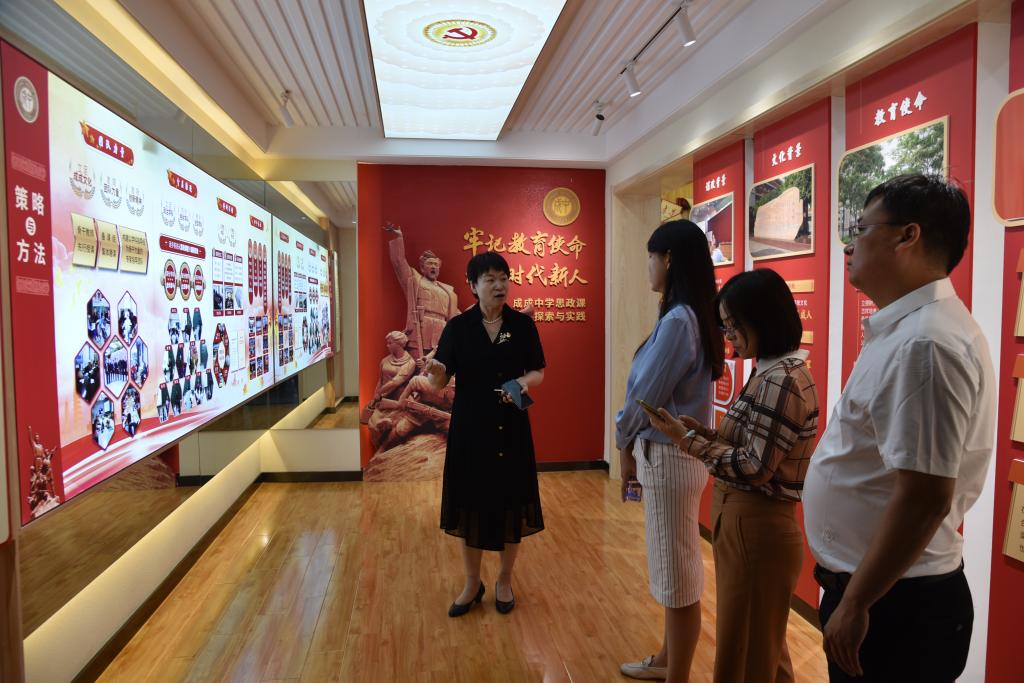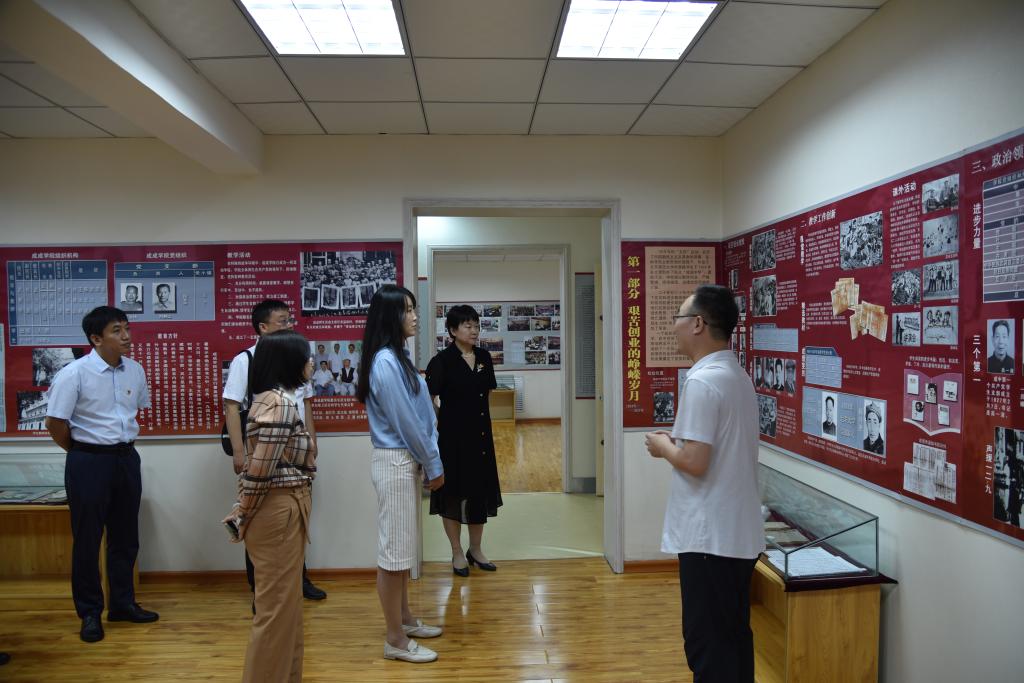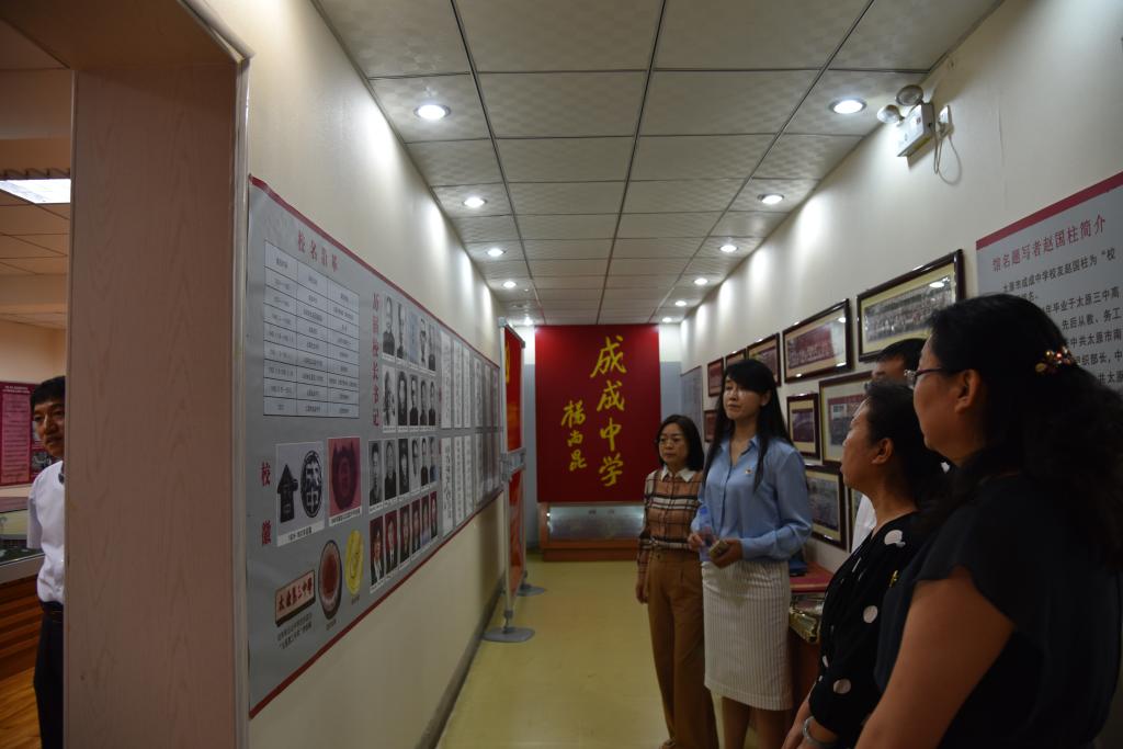 签约仪式前,新葡官网领导老师与太原市第二实验小学校长张晓红一行,在太原市成成中学党委办公室主任靳晓东和副校长刘琦的讲解下,共同参观了成成中学校史馆和思政堂,感悟成成中学近百年红色校史,砥砺红色信仰,学习思政工作经验。