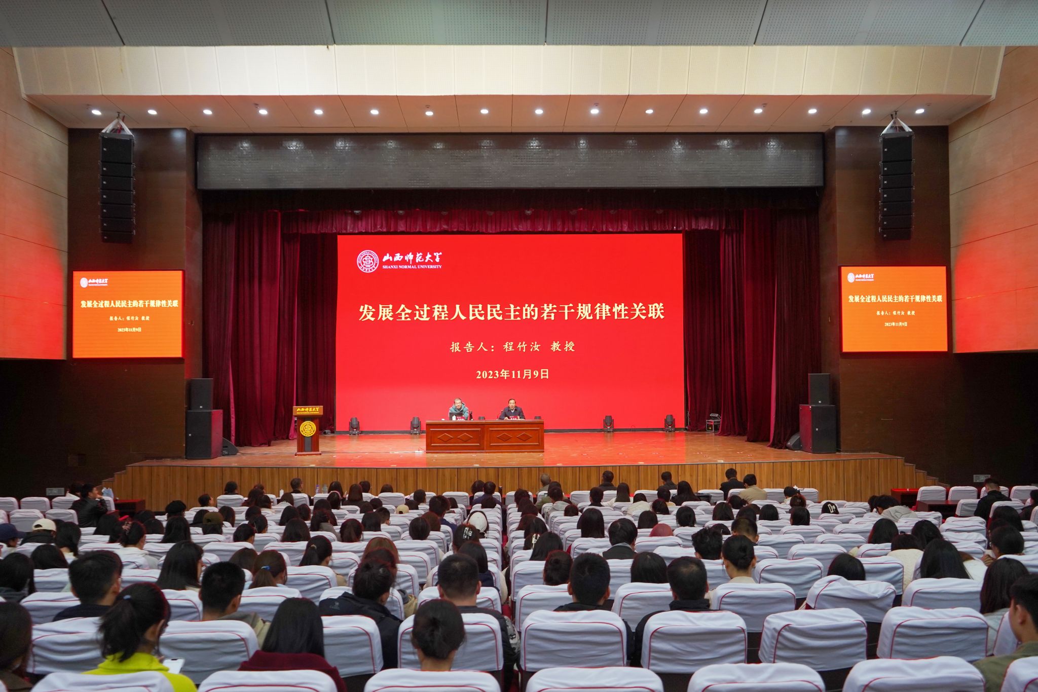 11月9日下午,我校杰出校友、上海交通大学长聘教授、博士生导师程竹汝教授应邀在学校南校区科学会堂报告厅作了关于“发展全过程人民民主的若干规律性关联”的专题报告。报告会由校党委副书记薛勇民主持,3003新葡官方网站、社会学与法学学院相关教师和学生聆听了报告。
