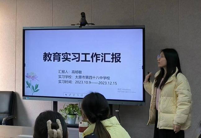 本学期新葡官网6名卓越生分别赴太原市第四十八中学校、太原市进山中学、临汾市第一实验中学,进行了为期十周的教育实习。高杨敏同学从基本情况、教学工作、班主任工作和实习感想四方面汇报了在四十八中的实习经历。贾倩同学和董亚菲同学分别以生活篇、工作篇、学生篇和告别篇,从学校概述、实习情况和实习感悟等方面介绍了在进山中学实习的状况。白晓青同学、郭佳运同学和李雨萌同学则从遇师、育人、寓教和愈己等方面分享了在临汾一中实习时承担的教学、管理工作与实习收获。