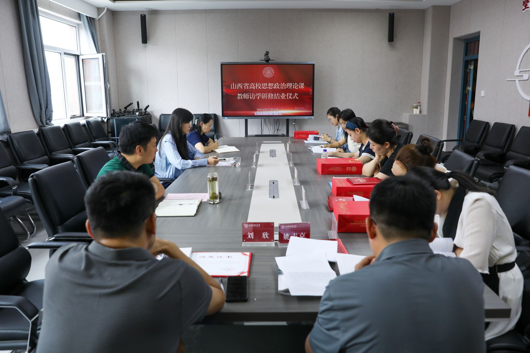 7月1日上午,新葡官网举行山西省高校思政课教师访学研修结业典礼。典礼由院党委书记乔瑞主持,常务副院长赵改萍、副院长吉志强及来自全省8所高校的思政课教师访学研修学员。