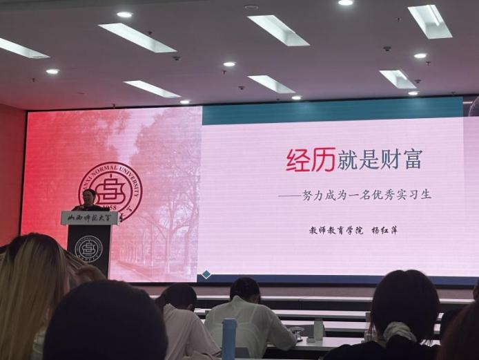 7月1日,我校教师教育学院杨红萍教授以《经历就是财富——努力成为一名优秀实习生》为题,与同学们分享了自己带领学生实习的特殊经历。她告诉同学们在实习前要明确目标,遵守两校的规章制度,并准备好应对各种挑战,同时鼓励大家积极面对实习中的困难,保持好奇心和开放的态度,充分利用实习机会来提升自己。太原市外国语学校高级教师李文国老师以《纠缠与超越——实习工作中的教科研探究》为题,从什么是实习、什么叫科研、如何将理论与实践相结合三个方面,以“教”为关键词进行了专题讲授。太原市第三实验中学高级教师闫伟老师从角色定位、认识自己、理顺关系和常规工作几个方面作了题为《中学班级管理与沟通技巧》报告,鼓励同学们在实习中“见学生”“见学校”“见自己”。教育科学学院院长张潮教授以《中学生心理健康的误区及应对策略》为题,讲授了几种青少年常见的心理误区以及如何应对各种认知冲突的方法。