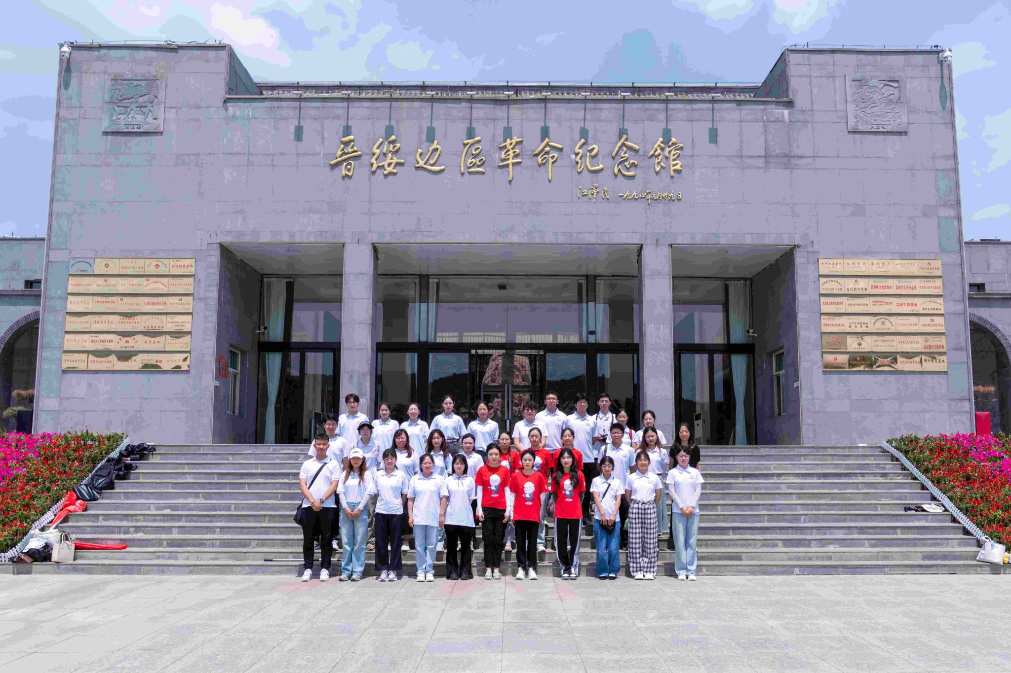 三校师生在晋绥边区革命纪念馆前合影。禹成炎 摄