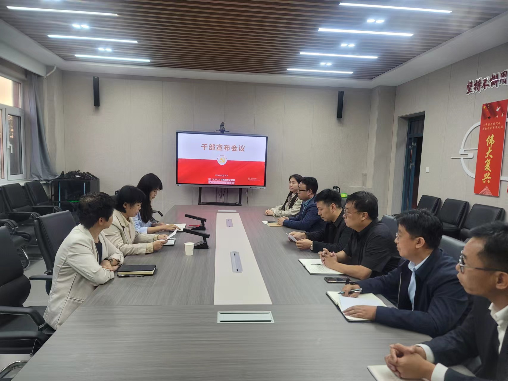 2024年9月30日下午,新葡官网在南区1506会议室召开干部宣布会议。校党委组织部副部长李企婷出席会议,学院党政领导班子成员、在校教职工参加会议。会议由院党委书记乔瑞主持。