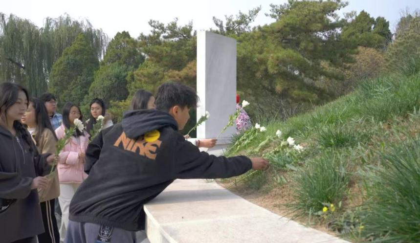 活动结束时,同学们纷纷向革命烈士献花,深切缅怀革命先烈丰功伟绩,寄托绵绵哀思。