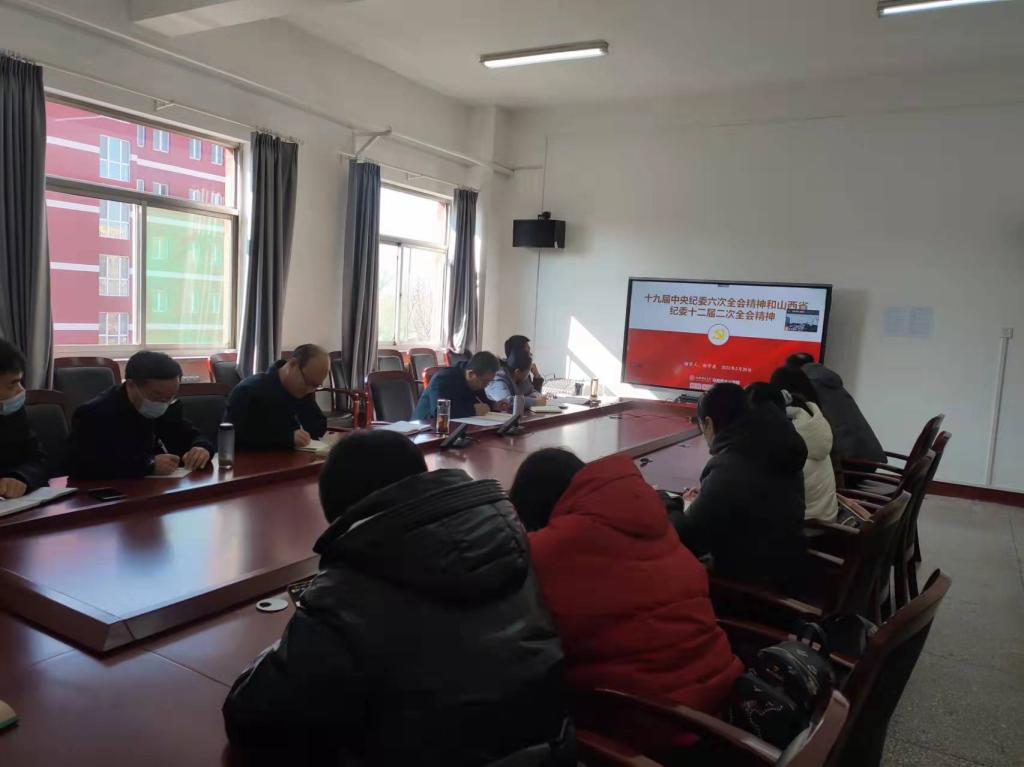 院党委副书记孙学虎领学了十九届中央纪委六次全会精神和山西省纪委十二届二次全会精神,从会议概况、主要内容、重大意义及要求等方面引导大家准确掌握其深刻内涵和精神实质,并结合2022年春节期间省纪委公开曝光的违反中央八项规定精神的典型案例开展了警示教育。
