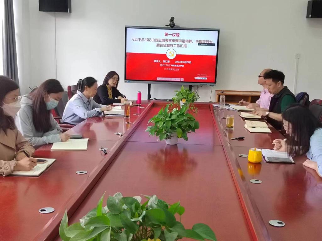首先,组织兼纪检委员原汇蔷同志领学习近平总书记山西运城考察重要讲话精神、听取陕西省委和省政府工作汇报,其次,杨海亮同志领学习近平总书记在广东、河北考察时的重要讲话,传达《关于在主题教育中学习运用浙江“千万工程”经验案例的通知》,再次,原汇蔷、赵改萍、贾蕾同志作重点交流发言,最后杨海亮强调全面贯彻学校党委相关要求,学习贯彻习近平新时代中国特色社会主义思想主题教育.