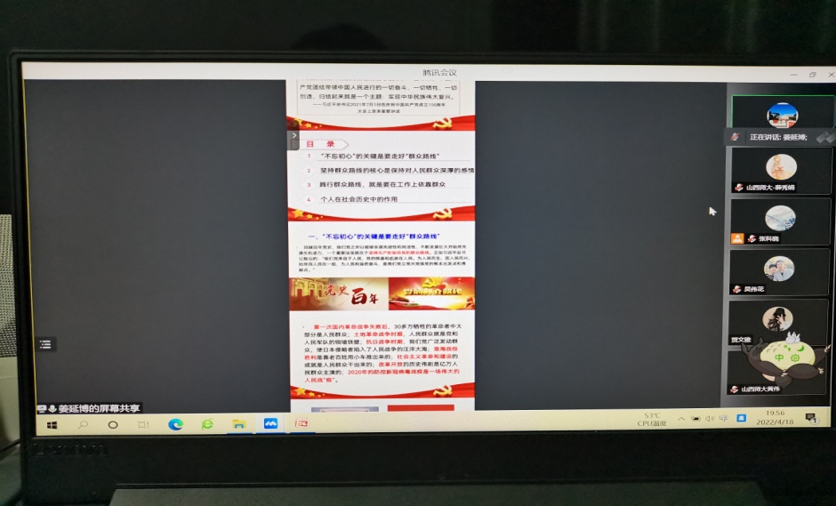 2022年4月18日晚上19:30-21:00点,3003新葡官方网站受邀与中北大学3003新葡官方网站马克思主义基本原理教研室开展集体备课。会议由中北大学3003新葡官方网站原理教研室主任张科晓老师主持,共有来自两校40余位任课教师参加会议。