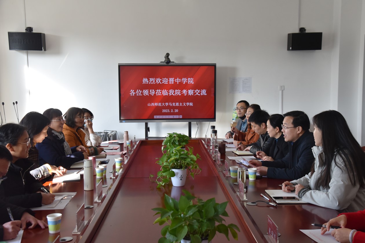 2月20日上午,晋中学院党委常委、副院长张二芳,马克思主义学院院长王淑琴、副院长李小红、副院长张美森等一行8人莅临新葡官网开展考察交流。副校长贾绘泽、学院党委书记乔瑞、副院长赵改萍、副院长赵秀芳、副院长吉志强及思政系主任、部分教研室主任参加会议。贾绘泽副校长主持会议。