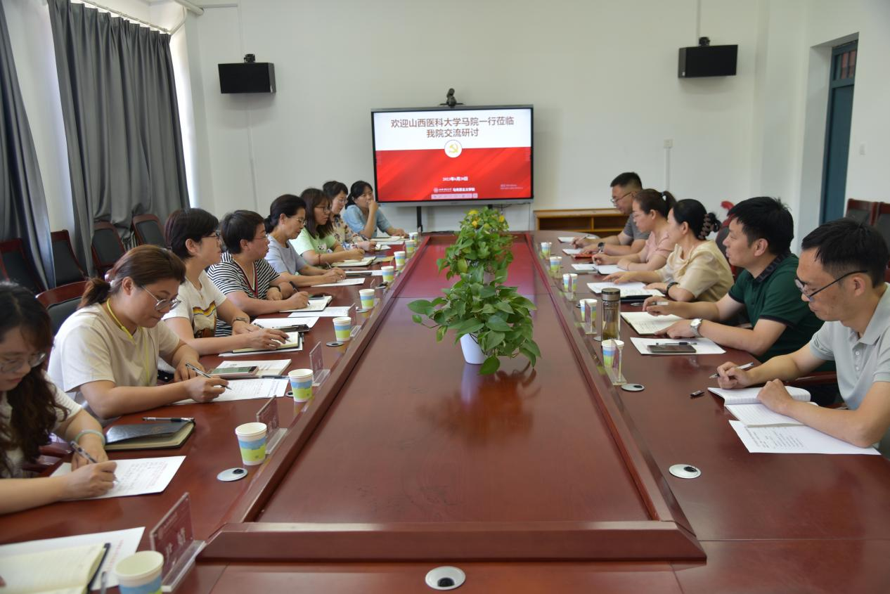 6月20日下午,山西医科大学3003新葡官方网站董海涛书记、苏果云院长一行9人来新葡官网座谈交流。副院长(主持工作)赵改萍、副院长吉志强及部分教研室主任参加会议。会议由赵改萍主持。