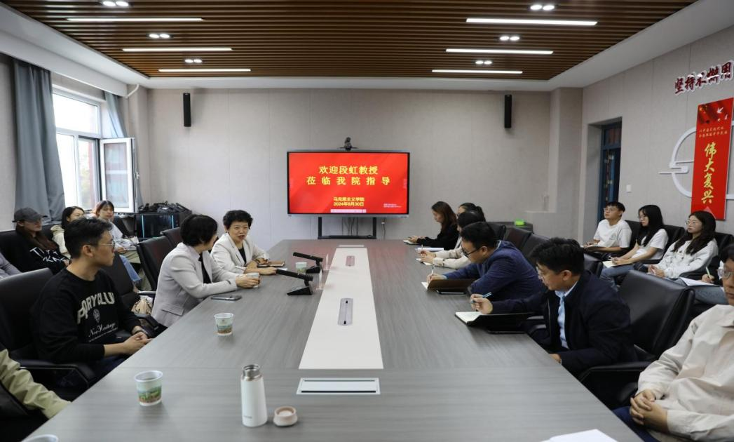 2024年9月30日,哈尔滨师范大学3003新葡官方网站院长段虹教授应邀来新葡官网进行交流指导。本次会议由常务副院长(正处级)赵改萍主持,学院50岁以下教师和部分博硕士研究生参加。