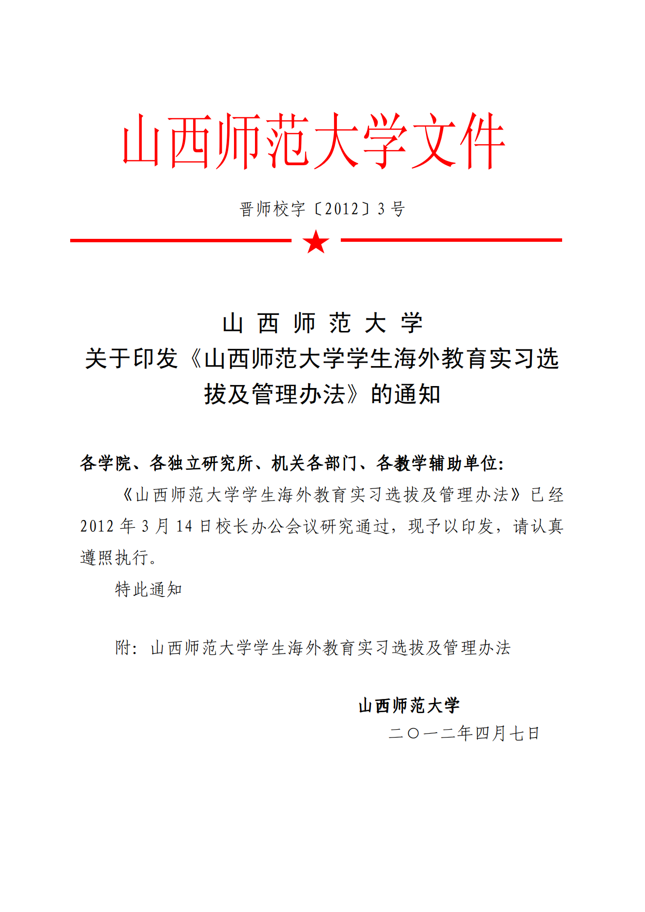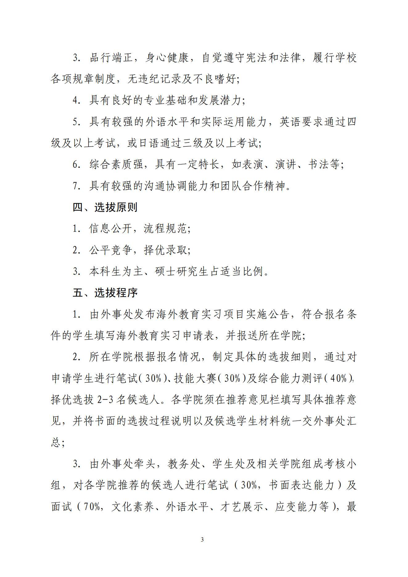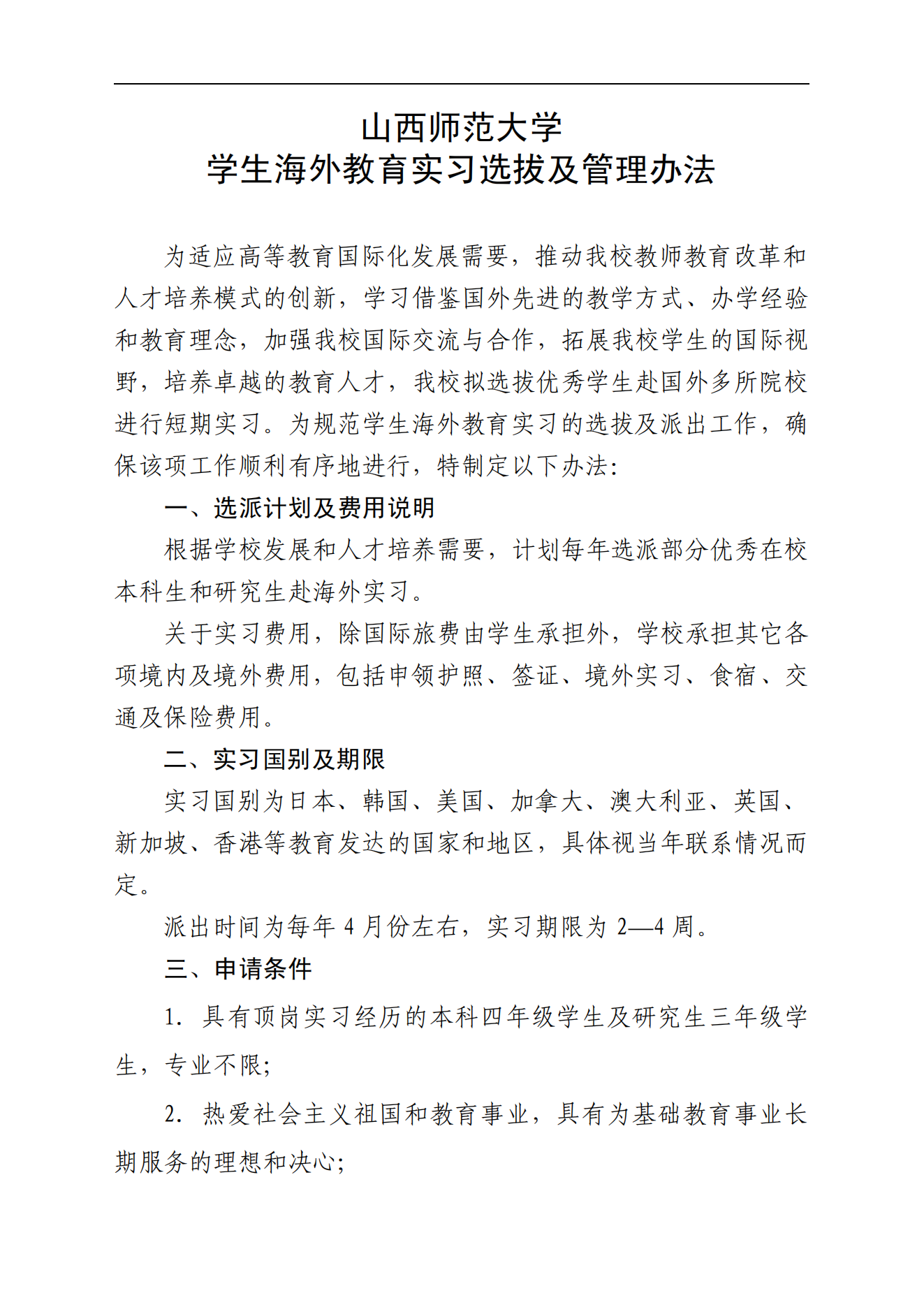 3003新葡官方网站学生海外教育实习选拔及管理办法