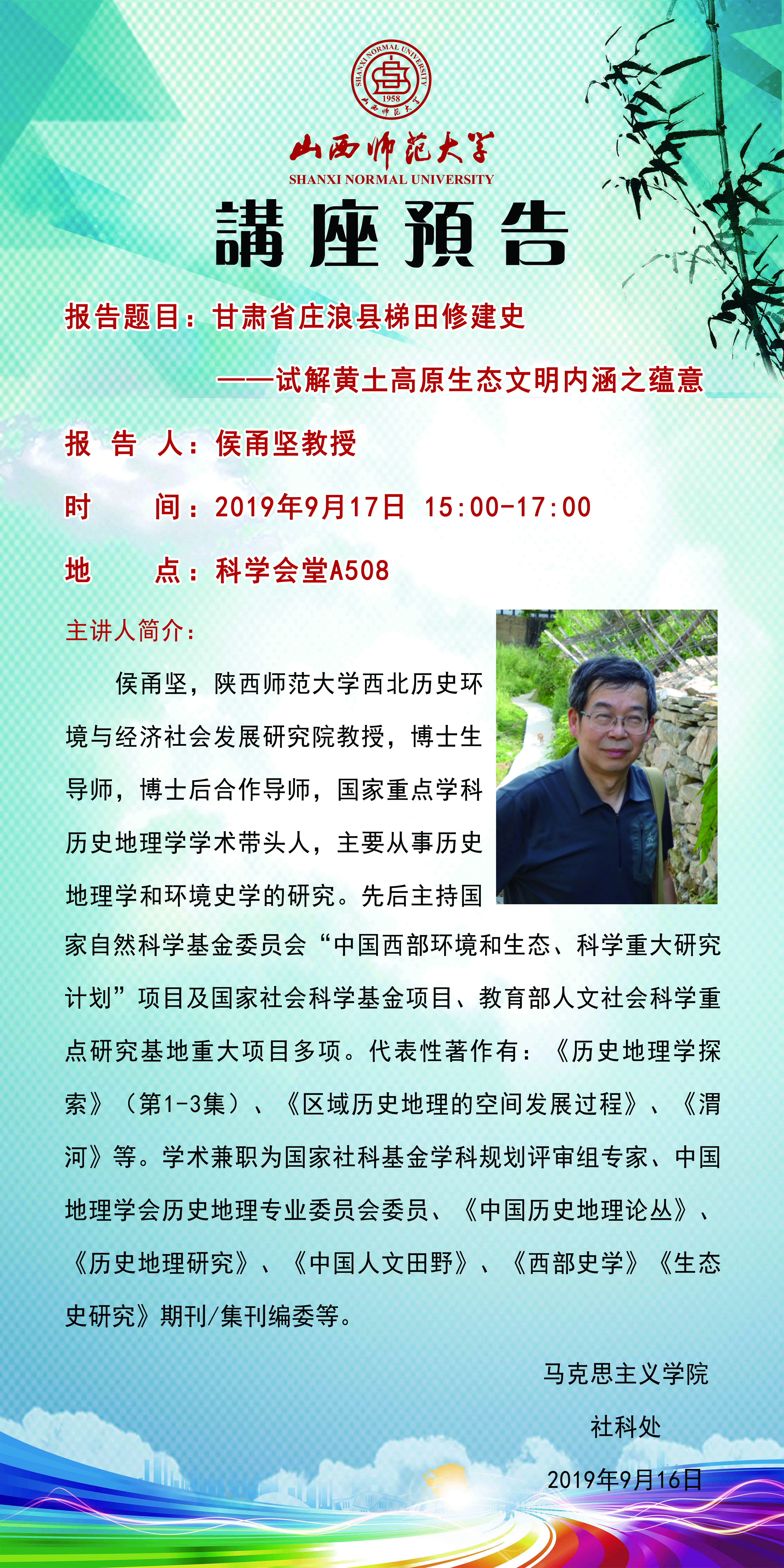 3003新葡官方网站举办“甘肃省庄浪县梯田修建史”专题讲座
