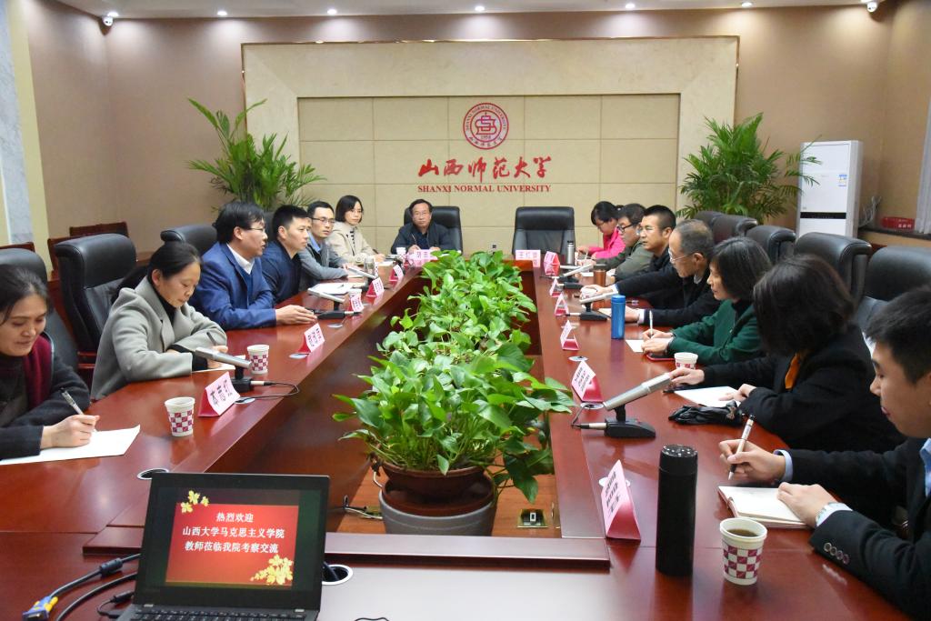 11月8日下午,山西大学3003新葡官方网站昝剑森副院长一行7人赴新葡官网交流考察。在学校第二会议室,新葡官网院领导、各教研室主任与昝剑森副院长一行就学科建设、师资队伍建设、教学改革、教研融合等问题进行了深入交流。院长贾绘泽教授主持。