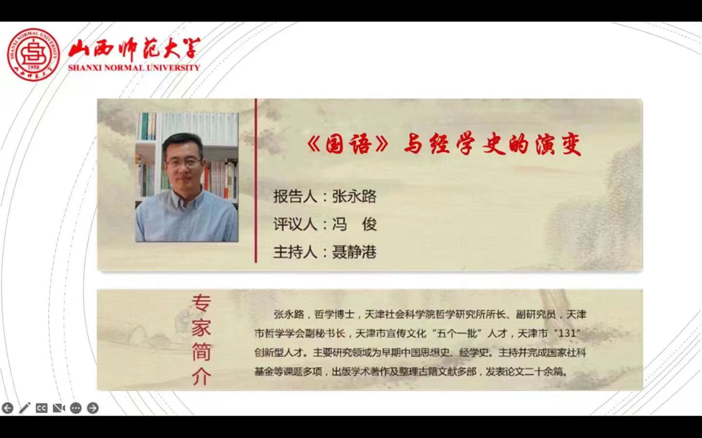 2022年11月8日,天津社会科学院哲学研究所所长、副研究员张永路应邀为新葡官网师生作题为“《国语》与经学史的演变”的学术讲座。本次讲座也是新葡官网第九次“哲学前沿讲座”。