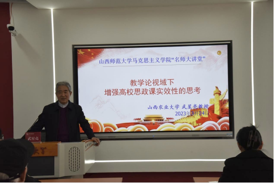 3月24日下午,全国优秀教师、首届全国高等学校优秀思政课教师一等奖教金获得者、山西农业大学武星亮教授应邀为新葡官网全体思政课教师作报告,报告会在南区8号楼418会议室举行,由副院长赵改萍主持,全体思政课教师聆听了报告。