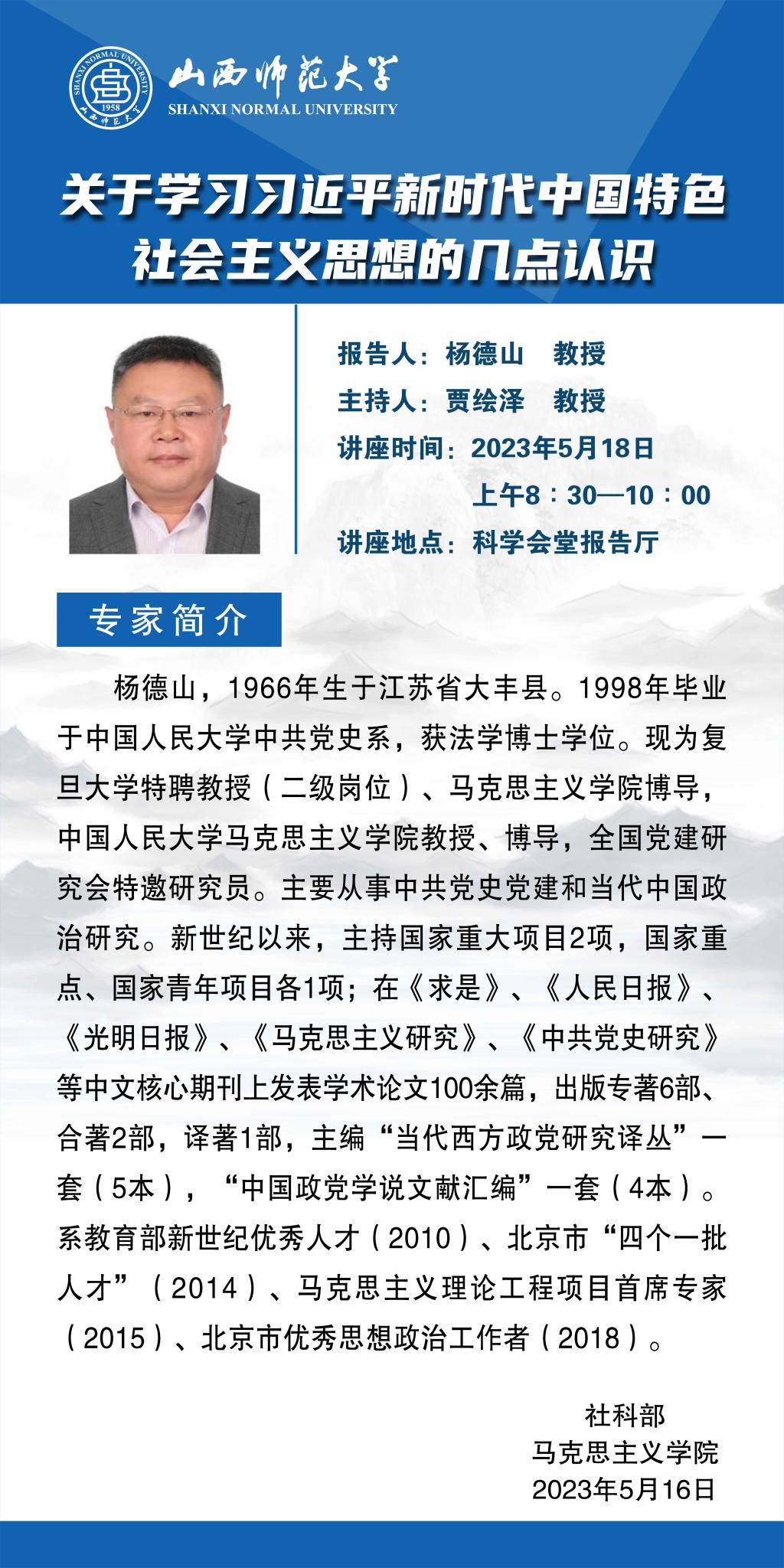 讲座预告 | 2023.5.18 杨德山 教授关于学习习近平新时代中国特色社会主义思想的几点认识