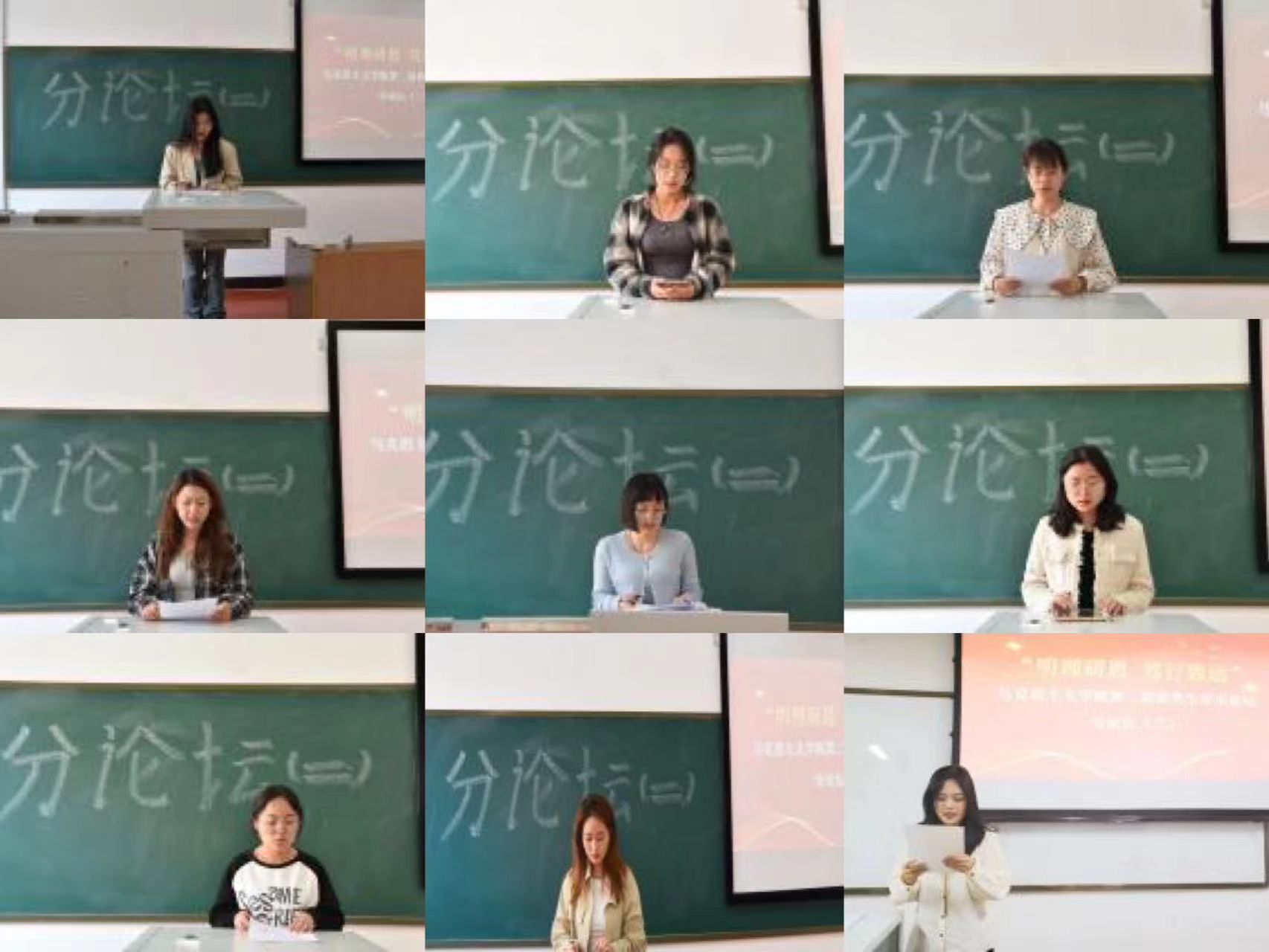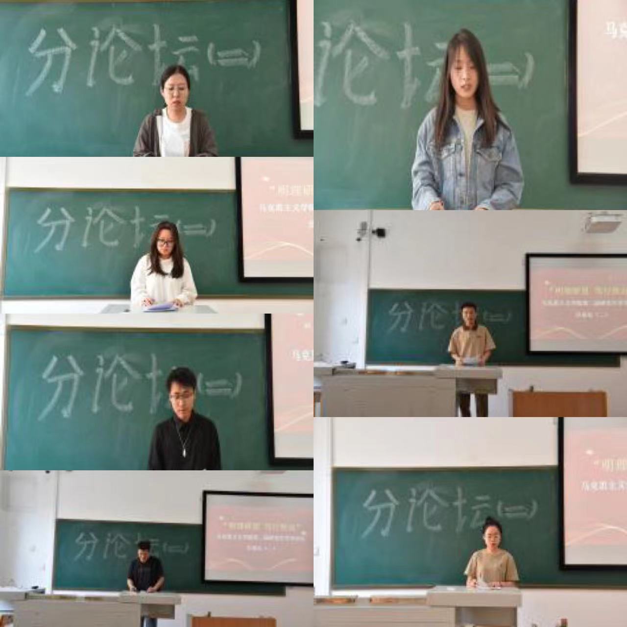 分论坛(三)第二组由王慧风同学作“马克思主义文化理论的价值和应用探究”、郑雅琴同学作“算法推荐时代大学生思想政治教育面临的困局及进路”、刘茹艳同学作“《共产党宣言》对思想政治教育工作的启示”、柴雪涛同学作“马克思世界历史思想的理论逻辑与时代意义”、王若红同学作“从精英到平民:中国共产党英雄人物形象的百年发展”、马宇甜同学作“《路德维希·费尔巴哈和德国古典哲学的终结》中“终结”的两重性与新时代意义、盖梓育同学作“乡村振兴背景下乡村文化振兴的现状研究”、冯翠红同学作“马克思人民主体观及意义研究—基于历史主体”的主题汇报。