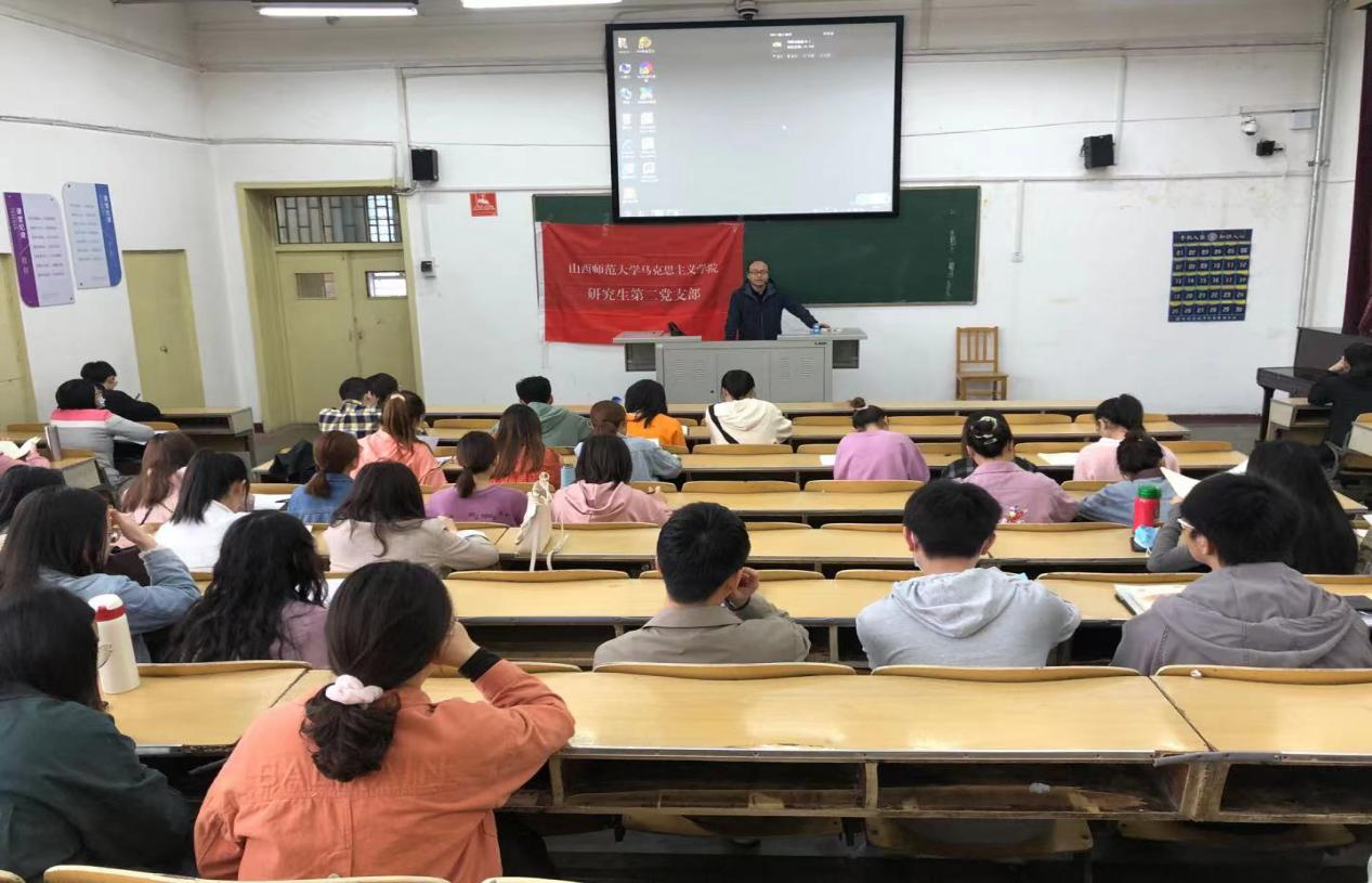 2021年4月28日上午,新葡官网研究生第二党支部在5号教学楼202教室召开了党史教育主题党日活动。支部书记杨海亮主持会议,支部全体党员、预备党员和积极分子参加会议。