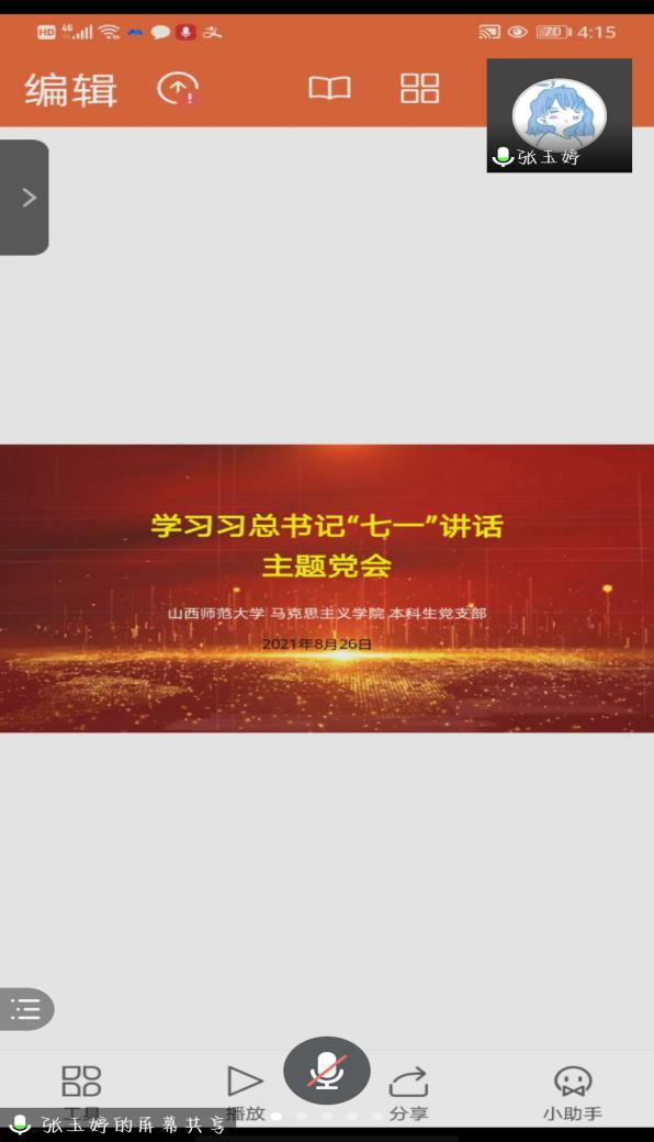 为强化党员同志理论武装,推动党史学习教育走深走实,8月26日,新葡官网本科生党支部通过腾讯会议组织召开支部线上会议,深入学习习近平总书记“七一”重要讲话精神,会议由支部书记张玉婷主持,支部全体成员参加。