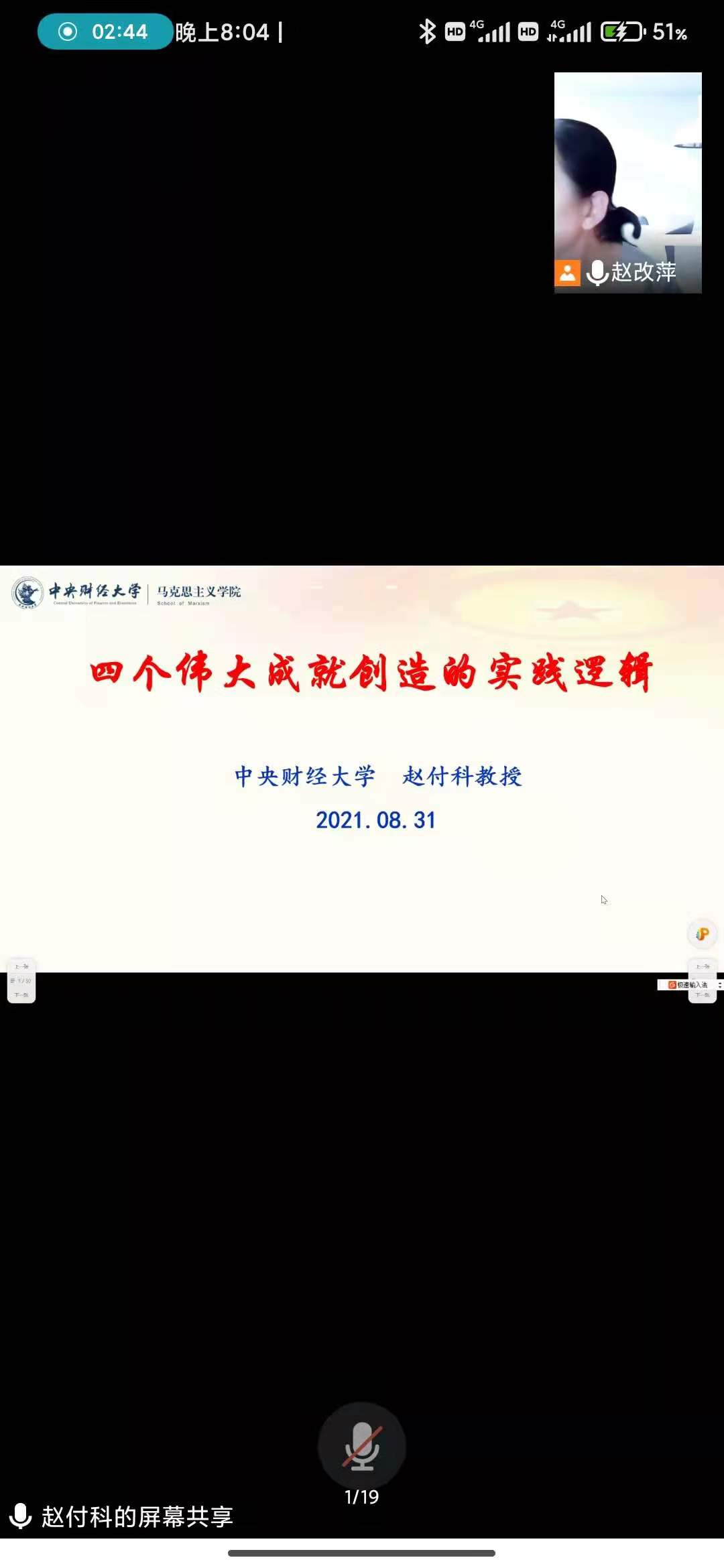 8月31日晚20:00,新葡官网党委以腾讯会议形式围绕习近平总书记“七一”重要讲话精神开展线上集体学习,邀请中央财经大学赵付科教授作专题报告。院党委理论学习中心组成员及各党支部全体师生党员参加会议。赵改萍副院长主持会议。
