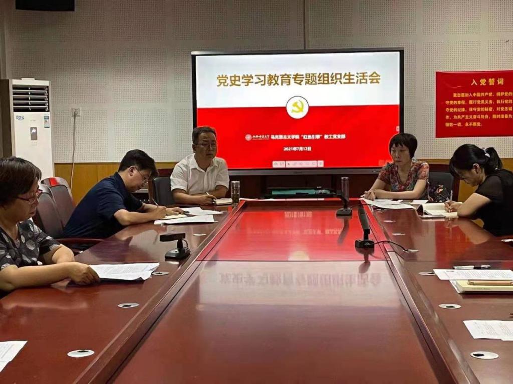2021年7月12日,3003新葡官方网站“红色引擎”教工党支部召开党史学习专题组织生活会。会议由支部书记赵笑蕾教授主持,院党委书记王银列席,支部全体党员参加。