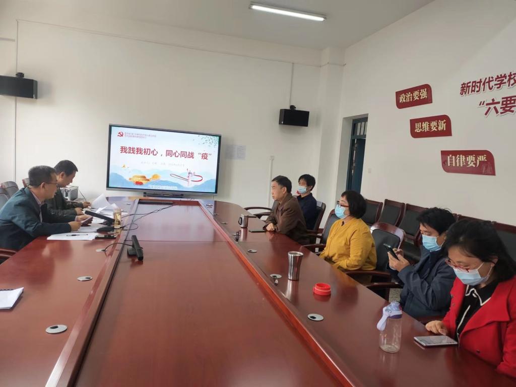 4月22日下午,新葡官网党委书记王银在南区1号楼506会议室讲授主题为“我践我初心,同心同战疫”的党课,线上线下同步进行。新葡官网全体教职工聆听党课。
