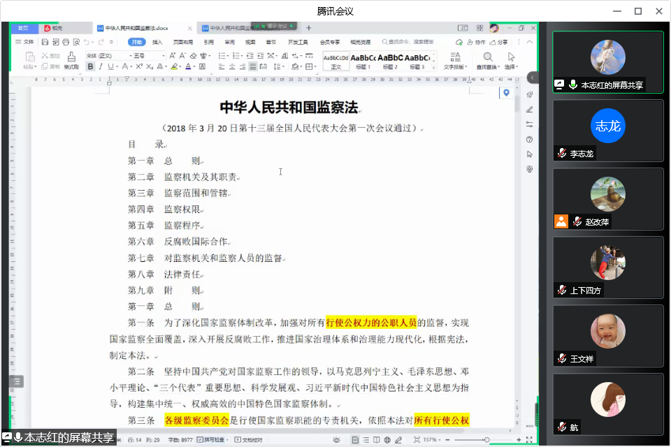 为增强支部党员廉洁自律意识,新葡官网“守正创新”教工党支部于2022年5月31日晚7点半在腾讯会议开展“学习监察法实施条例 增强廉洁自律意识”线上主题党日活动。此次主题党日活动由支部书记赵改萍主持,支部全体党员参加。