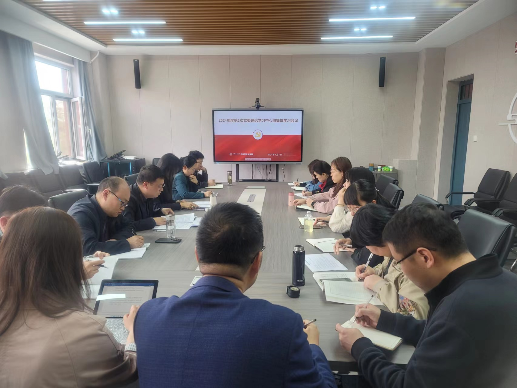 4月7日下午,新葡官网党委理论学习中心组在1号楼506会议室召开集中学习会议。全体中心组成员参加了会议,会议由院党委书记乔瑞主持。