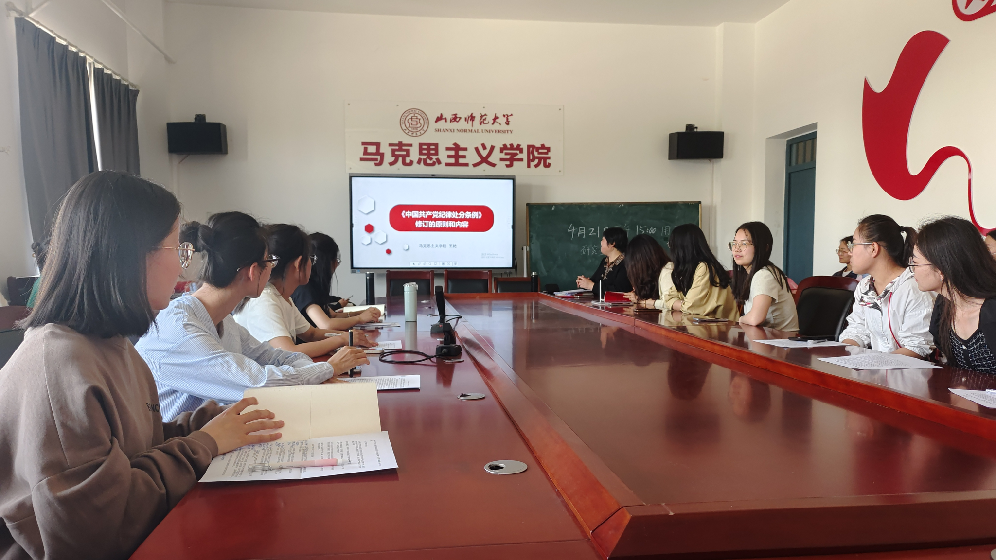 4月24日下午,3003新葡官方网站“求真力行”党支部开展主题党日活动,专题学习《中国共产党纪律处分条例》新修订条款和总则部分。