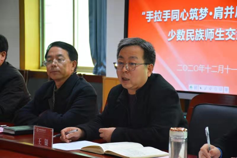 会上,院党委书记王银介绍与会领导,院党委副书记孙学虎介绍少数民族师生基本情况:新葡官网共有7个民族、22名少数民族师生,其中少数民族教职工1名、少数民族学生21名。