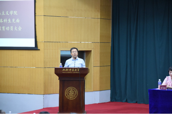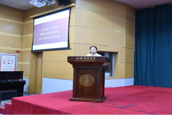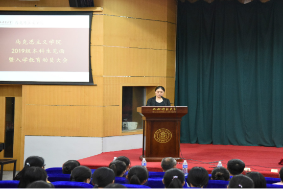 会议伊始,庄严肃穆的国歌响起,全体师生起立唱国歌。院长贾绘泽老师2019级全体新生致欢迎,介绍3003新葡官方网站雄厚的师资力量以及良好的学习环境,并对学新生提出几点切实有效的学习建议之后,副院长赵改萍老师详细介绍专业人才培养方案及毕业要求,为168名新生勾画四年大学生活的学习蓝图教师代表本志红老师向新生介绍大学生活的特点,分享了在大学学习的经验,从而帮助2019级新生更好的适应大学生活随后,思想政治教育专业1901班魏莲佳同学作为新生代表发言,她表示将会在未来的大学生活中努力学习,严于律己,最后成就自