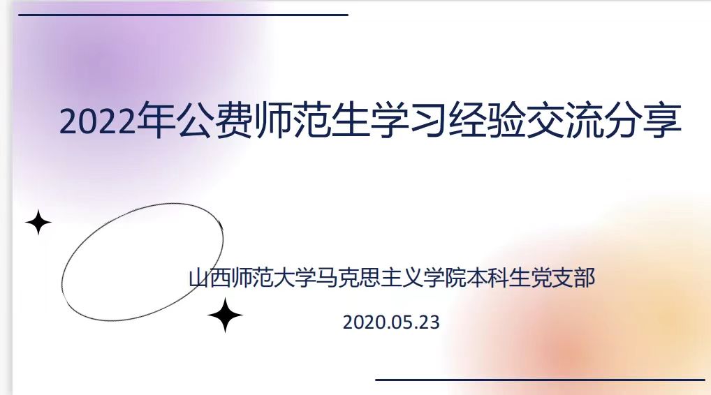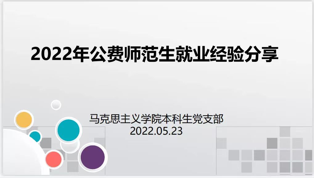 5月23日下午,新葡官网团委和本科生党支部于南区一号楼506会议室共同举办了2022年公费师范生学习经验和就业经验交流分享会。本科生党支部书记张玉婷、组织委员李丽丽、宣传委员张瑞琴,以及本科生党支部全体党员、公费师范生分别于线上线下共同参加了会议。会议由1801班党琪同学主持。