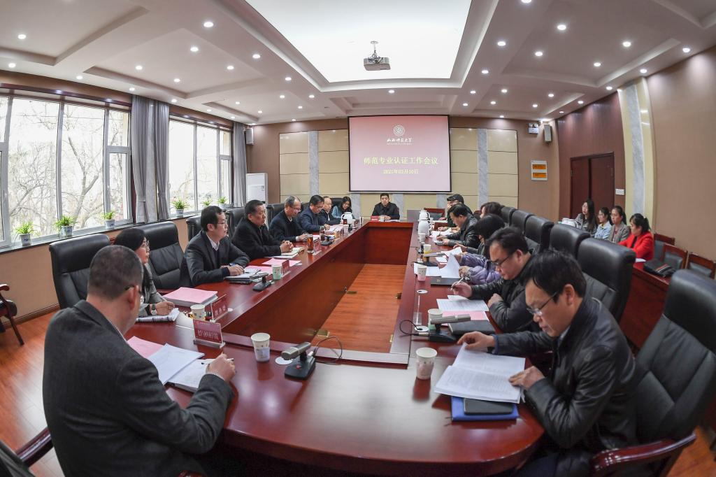 我校准备参与第一批认证的师范专业是汉语言文学、思想政治教育、历史学、化学、物理学、生物科学、数学与应用数学,七个学院院长分别汇报了准备工作情况、存在问题和下一步工作计划。会议对本年度师范专业认证工作进行了具体部署。