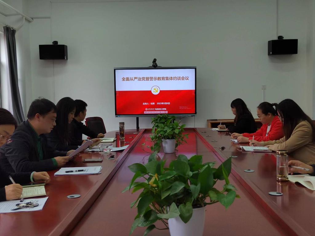 5月6日下午,新葡官网于南区1号楼506会议室召开全面从严治党暨警示教育集体约谈会议。会议由院党委副书记杜辉主持。全体党政领导班子成员、党支部书记、团委副书记、教研室主任、专职组织员及辅导员代表参加会议。